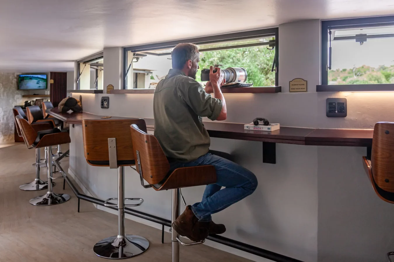 The hide features one-way photographic glass and adjustable viewing windows, allowing guests and photographers to observe wildlife without disturbing natural behaviour. It is quiet, private, and surprisingly immersive. When elephants walk past the windows, the sense of scale is unforgettable.