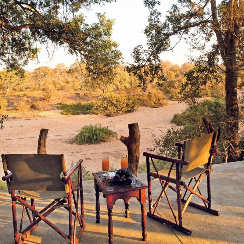 Accommodation at Waterbuck consists of an opulent Master Suite with an open-plan bathroom and a comfortable viewing lounge on the top floor. On the ground floor, on either side of the lounge and kitchen area, are 2 Luxury Suites. A detached Luxury Garden Suite completes the accommodation for a maximum of 8 guests. The suites all overlook the private gardens, swimming pool and viewing deck perched over the dry river bed and the bush beyond.